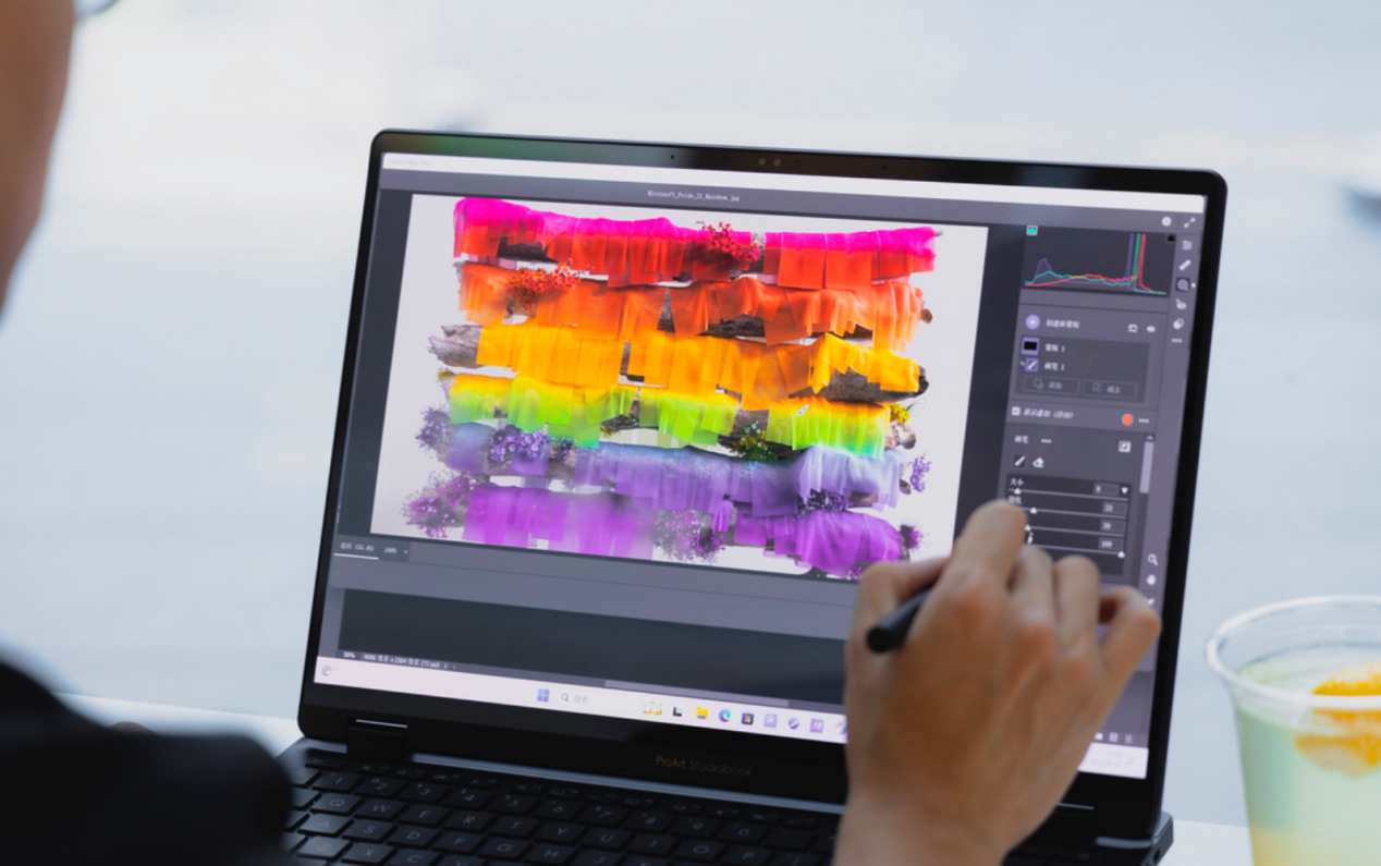 为了应对高难度图形或视频处理工作,选择笔记本电脑首先要考虑其处理器与显卡的性能。华硕ProArt 创16在这方面非常出色,它搭载了英特尔第13代酷睿i9-13980HX移动处理器,拥有24核32线程,性能核睿频可达5.6GHz,华硕冰川Pro散热架构加持,性能释放达到惊人的160W,甚至比一些桌面工作站还要强大。可选RTX 4060或RTX 4070显卡,支持独显直连,引入第8代NVENC编码器,使得运行Adobe等专业软件更加快速。搭配NVIDIA Studio驱动,适配50余款常用的专业软件,无论是渲染场景还是图像增强等对性能要求极高的创作项目,都能毫不费力地完成,实现更高质量的设计任务。