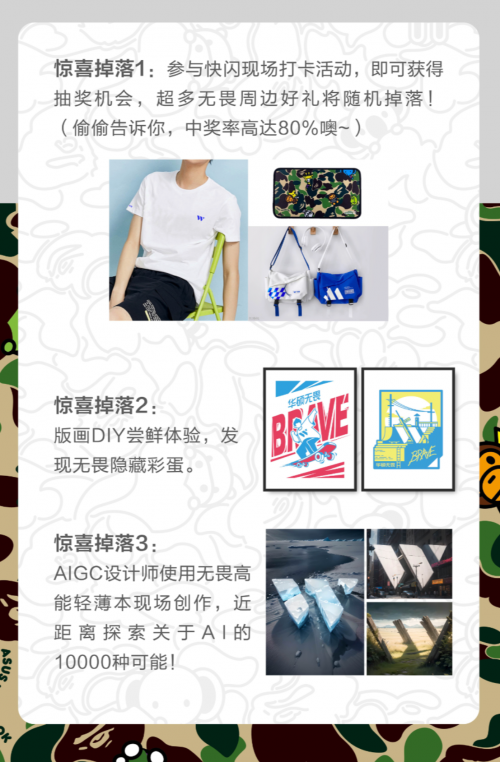 标题:潮流不止,敢于无畏!周末来上海环球港打卡华硕无畏 × BAPE®联名快闪店