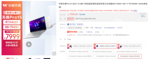 锐龙9 7940H标压处理器配合NVIDIA® GeForce RTX™ 4060,让无畏Pro15 2023这款Studio设计本达到旗舰级性能, 144Hz高刷电竞屏及16GB+1TB存储组合开学季好价到手仅7999元,入股不亏。