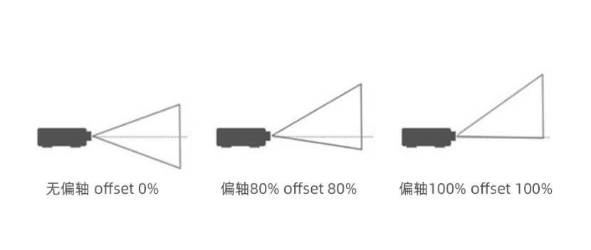 除了投射比之外,超短焦投影为了投射画面的完整性,还有固定的Offset偏轴设计。在技术上,Offset偏轴设计只能做到140%,所以投射出的画面普遍会偏高。这也就是说相对于户型层高不足的用户,投射的画面很大概率会出现在天花板上,而且因为整体画面的偏高,在观影时需要微微仰头才能将整个画面看全。