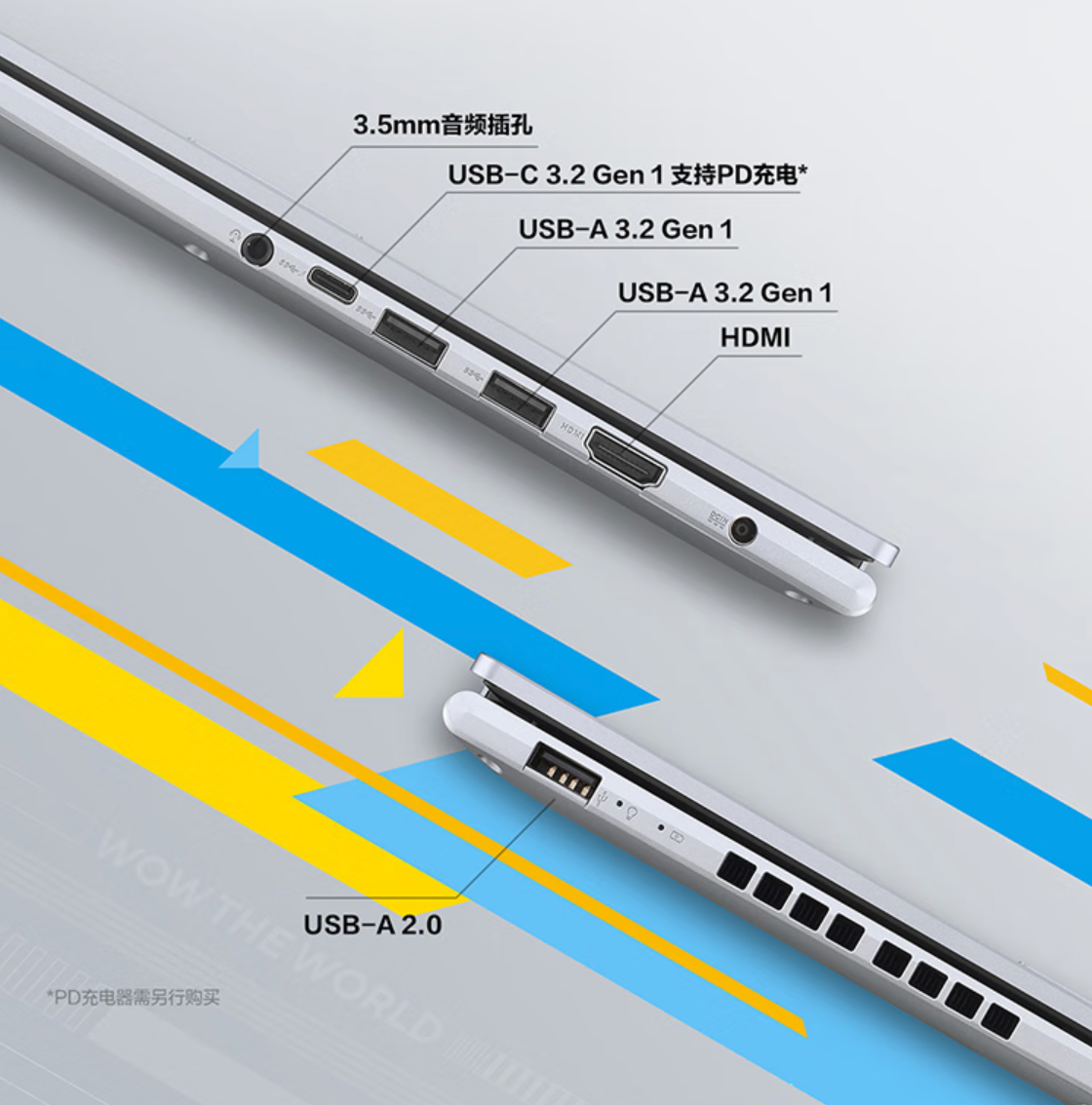 除此之外,华硕无畏15还拥有丰富的接口满足日常使用需求,配有一个支持PD充电的USB-C 3.2 Gen 1,还有两个USB-A 3.2 Gen 1接口、1个USB-A 2.0接口,以及3.5mm耳机孔和HDMI接口,无论是显示器、键盘、鼠标还是其他外设都能轻松连接。