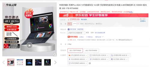 总的来说,华硕灵耀X双屏Pro 2023不仅拥有高效触控双屏黑科技,核心配置也升级到了13代酷睿标压i9处理器+RTX4060显卡、32GB内存+1TB存储,在日常办公、娱乐等多方面为用户提供高效的体验,顶配版当前到手价15999元。对于预算较低或对性能要求不高的朋友,还可选择同系列的灵耀X双屏Pro,12代标压i7处理器 + RTX 3050 Ti + 2.8K 120Hz双触控屏、16GB + 1TB存储,到手价9999元。或是灵耀X双屏,i7处理器 + 100% sRGB高色域双触控屏、16GB + 512GB存储,到手价6999元。