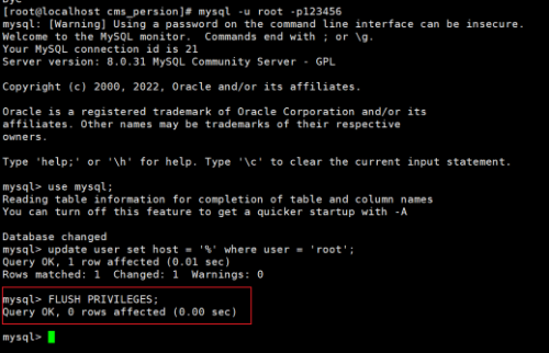 (4) 执行FLUSH PRIVILEGES;,示例图如下:
