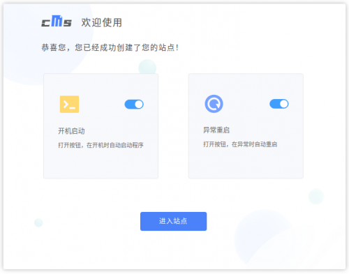 7.站点创建成功后,选择是否启动进程守护