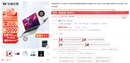 双十一促销期间,华硕无畏15i到手仅3899元,享3期免息、晒单返50E卡,具有极高的性价比和竞争力。