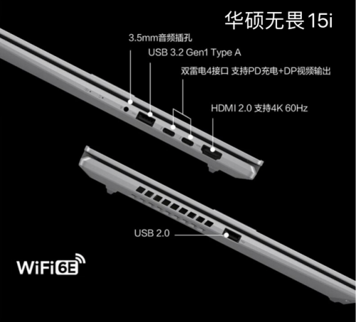 从实际体验上看,华硕无畏15i采用了ErgoSense人体工学背光键盘三档调节+电源指纹二合一设计,键盘舒适度较高。机身约为1.87kg,支持180度开合,拥有70Wh大容量电池,标配90W Type C充电器,双雷电4接口支持40Gbps高速传输、外接8K显示屏,采用WiFi 6E双天线高速无线网络。